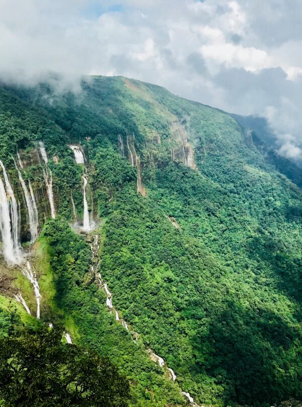 Visit Wah Kaba Falls, Arwah Cave, Seven Sisters Falls and Mawsmai Cave. Overnight in Cherrapunji.